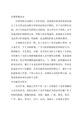 关于在本市实行高龄父母独生子女护理假制度的建议.docx
