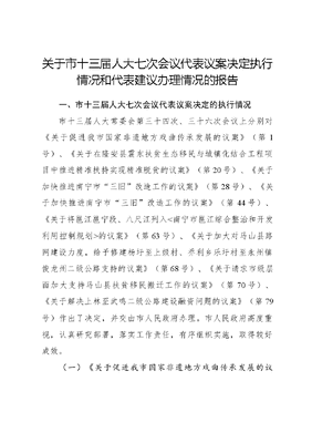 关于市十三届人大七次会议代表议案决定执行情况和代表建议办理情况的报告.docx