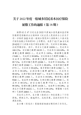 关于2022年度一般城乡居民基本医疗保险+征缴工作的通报(第18期).docx