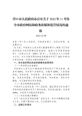 营口市人民政府办公室关于2022年11月份全市政府网站和政务新媒体监管情况的通报 .docx