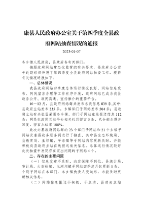 康县人民政府办公室关于第四季度全县政府网站抽查情况的通报.docx