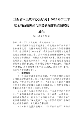 江西省人民政府办公厅关于2022年第二季度全省政府网站与政务新媒体检查情况的通报.docx