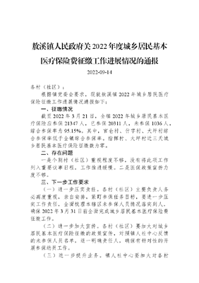 敖溪镇人民政府关2022年度城乡居民基本医疗保险费征缴工作进展情况的通报.docx