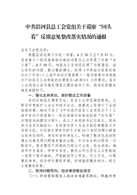 中共沿河县总工会党组关于巡察“回头看”反馈意见整改落实情况的通报.docx