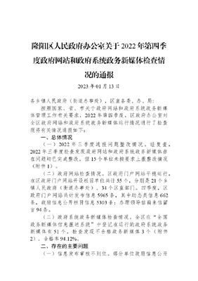 隆阳区人民政府办公室关于2022年第四季度政府网站和政府系统政务新媒体检查情况的通报.docx