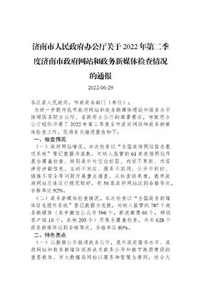 济南市人民政府办公厅关于2022年第二季度济南市政府网站和政务新媒体检查情况的通报.docx