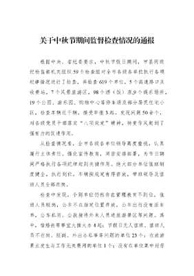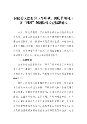区纪委区监委201x年中秋、国庆节期间开展“四风”问题监督检查情况通报.docx
