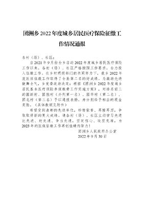 团洲乡2022年度城乡居民医疗保险征缴工作情况通报.docx