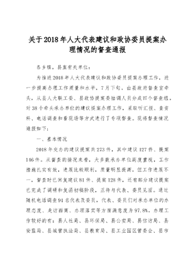 临武县人民政府关于2018年人大代表建议和政协委员提案办理情况的督查通报.docx