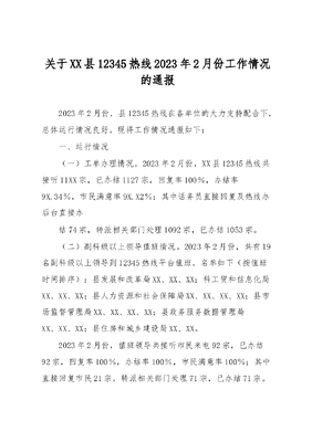 关于XX县12345热线2023年2月份工作情况的通报.docx