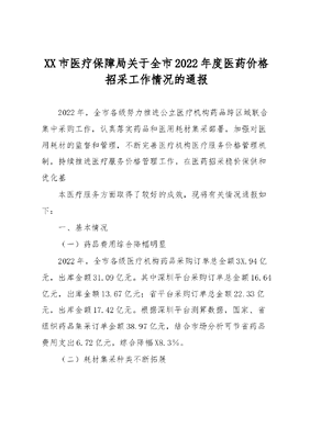 XX市医疗保障局关于全市2022年度医药价格招采工作情况的通报.docx