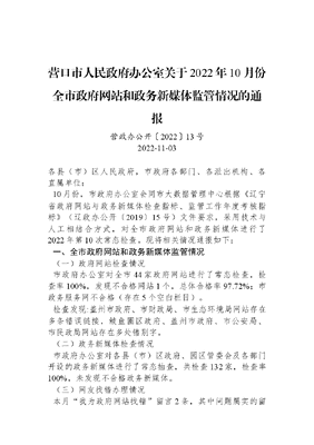 营口市人民政府办公室关于+2022年10月份全市政府网站和政务新媒体监管情况的通报.docx