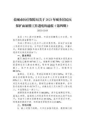 盐城市医疗保障局关于2023年城乡居民医保扩面征缴工作进度的通报(第四期).docx