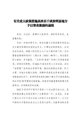 有关重大政策措施真抓实干成效明显地方予以督查激励的通报.docx