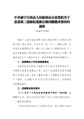 中共威宁自治县人民政府办公室党组关于县委第三巡察组巡察反馈问题整改情况的通报.docx