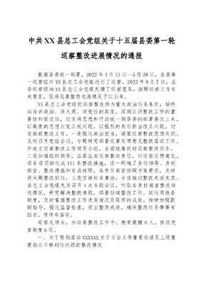中共XX县总工会党组关于十五届县委第一轮巡察整改进展情况的通报.docx