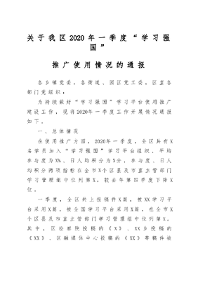 2020关于我区2020年一季度学习强国推广使用情况的通报.doc