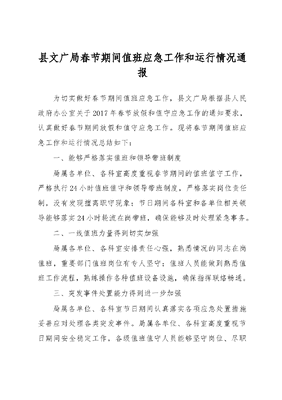 县文广局春节期间值班应急工作和运行情况通报.docx