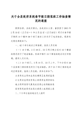 关于全县政府系统春节假日期值班工作抽查情况的通报.docx