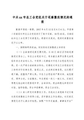 中共xx市总工会党组关于巡察整改情况的通报.docx