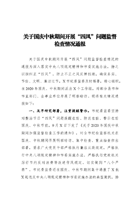 关于国庆中秋期间开展“四风”问题监督检查情况通报.docx