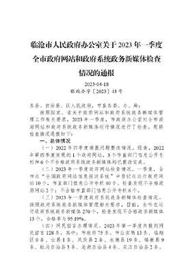 临沧市人民政府办公室关于2023年一季度全市政府网站和政府系统政务新媒体检查情况的通报.docx