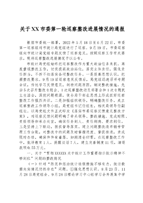 关于XX市委第一轮巡察整改进展情况的通报.docx