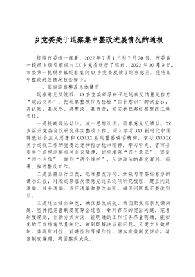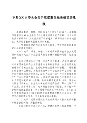 中共XX乡委员会关于巡察整改进展情况的通报 .docx