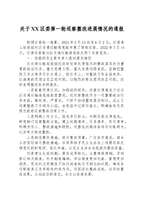 关于XX区委第一轮巡察整改进展情况的通报.docx