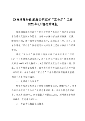 XX市发展和改革局关于XX市“双公示”工作2023年5月情况的通报.docx
