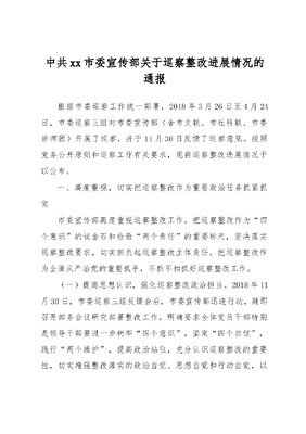 中共xx市委宣传部关于巡察整改进展情况的通报.docx