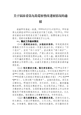 关于届市委第九轮巡察整改进展情况的通报.docx