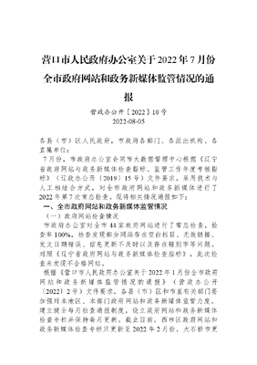 营口市人民政府办公室关于2022年7月份全市政府网站和政务新媒体监管情况的通报.docx