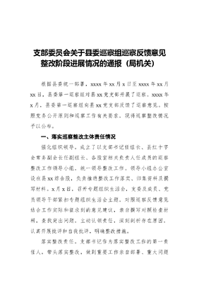 支部委员会关于县委巡察组巡察反馈意见整改阶段进展情况的通报.docx