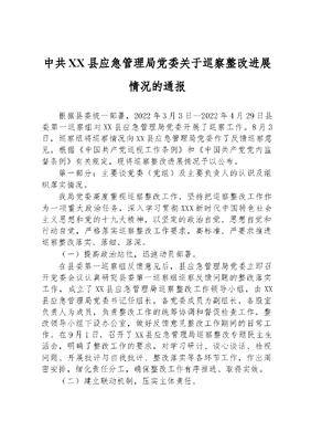 中共XX县应急管理局党委关于巡察整改进展情况的通报.docx