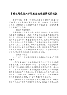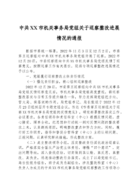 中共XX市机关事务局党组关于巡察整改进展情况的通报.docx