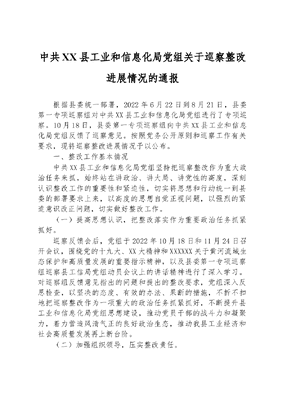 中共XX县工业和信息化局党组关于巡察整改进展情况的通报.docx