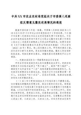中共XX市农业农村局党组关于市委第八巡察组反馈意见整改进展情况的通报.docx