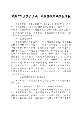 中共XX乡委员会关于巡察整改进展情况通报.docx
