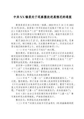 中共XX镇委关于巡察整改进展情况的通报.docx