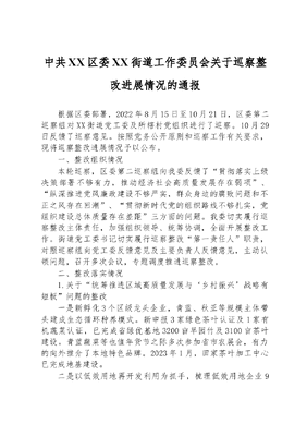 中共XX区委XX街道工作委员会关于巡察整改进展情况的通报.docx
