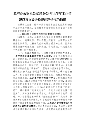 政府办公室机关支部2023年上半年工作情况以及支委会检视问题情况的通报.docx