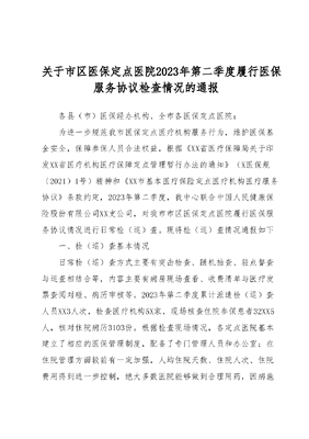 关于市区医保定点医院2023年第二季度履行医保服务协议检查情况的通报.docx