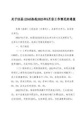 关于XX县12345热线2023年5月份工作情况的通报.docx