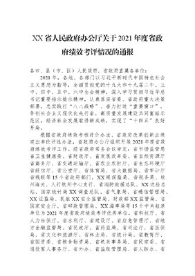 XX省人民政府办公厅关于2021年度省政府绩效考评情况的通报.docx