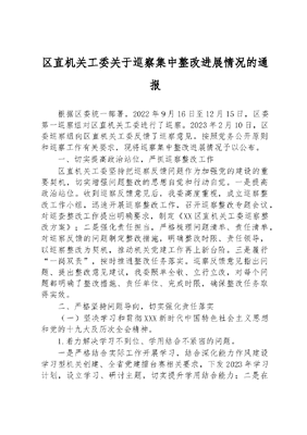 区直机关工委关于巡察集中整改进展情况的通报.docx