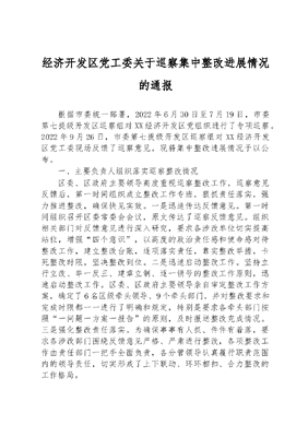 经济开发区党工委关于巡察集中整改进展情况的通报.docx