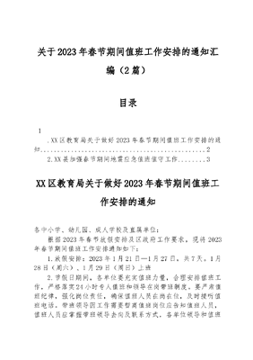 (2篇)关于2023年春节期间值班工作安排的通知汇编.docx