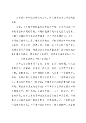 关于进一步加强信访稳定工作深入推进全面从严治党的通知.docx