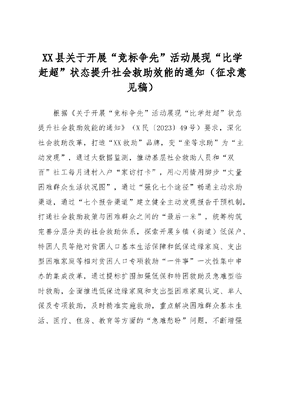 XX县关于开展“竞标争先”活动展现“比学赶超”状态提升社会救助效能的通知(征求意见稿).docx